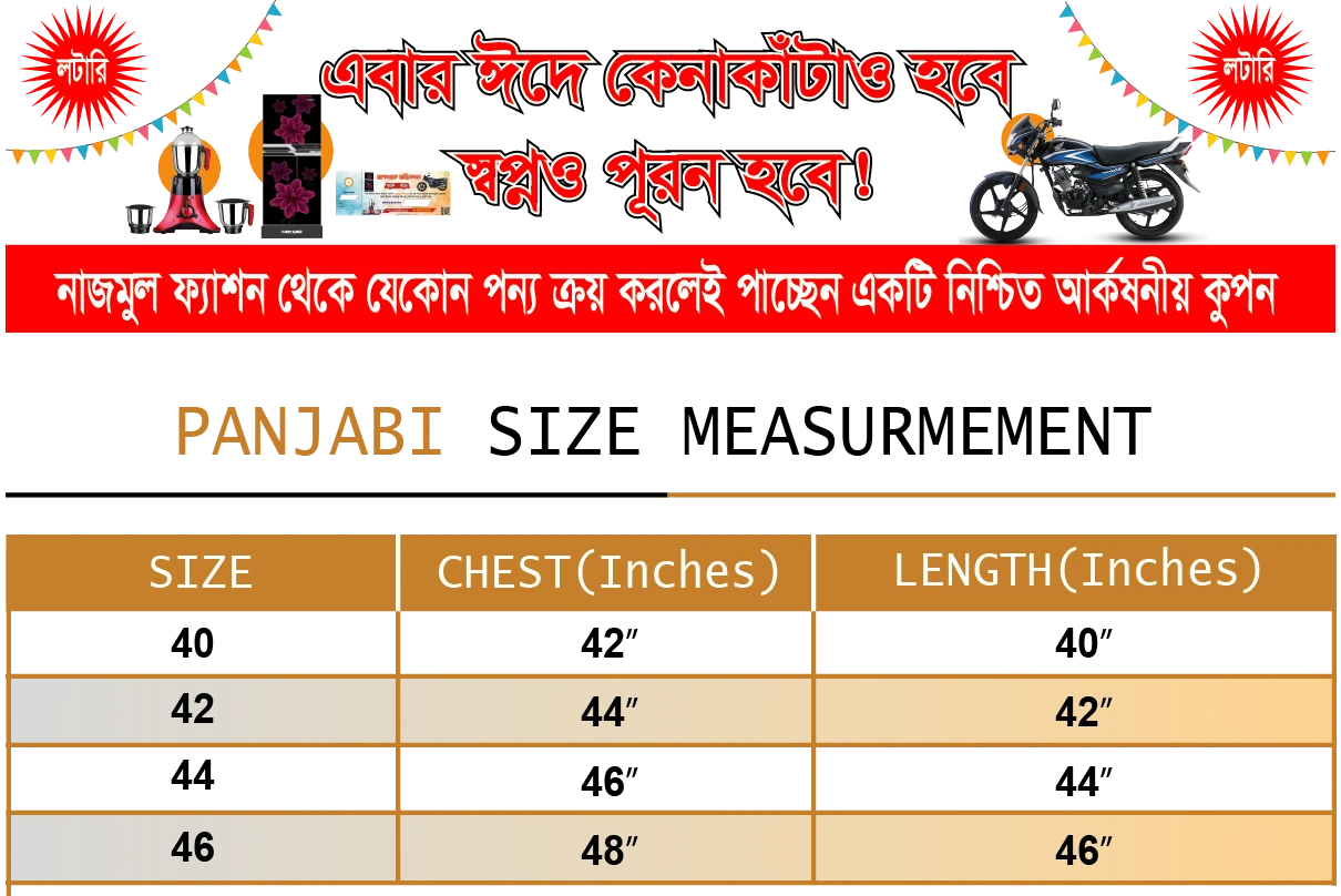 অনুগ্রহ করে অর্ডার করার আগে সঠিক সাইজ নির্বাচন করুন।